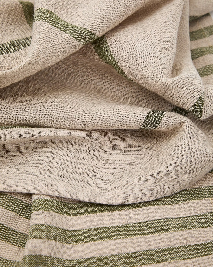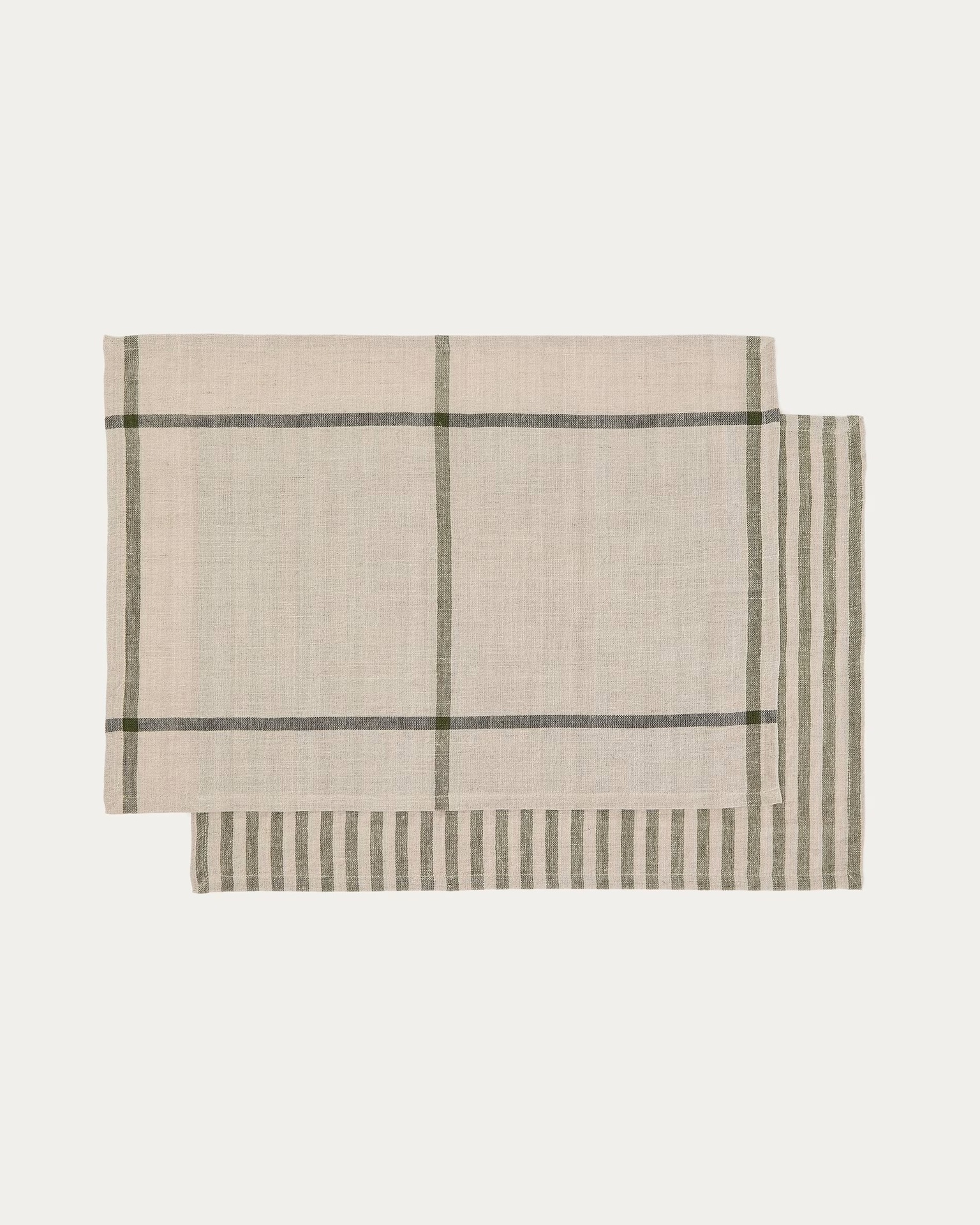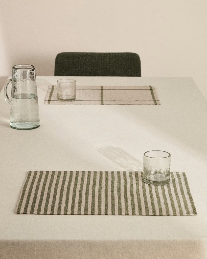 Este conjunto de dois individuais acrescenta um toque de elegância graças ao seu design em mistura de linho e algodão, que combina uma textura leve e fresca com a resistência necessária para o uso diário. Cada individual é tecido à mão, tornando cada peça única com pequenas variações que reforçam o seu caráter exclusivo. O padrão às riscas em tons naturais transmite simplicidade e intemporalidade, adaptando-se facilmente a diferentes estilos de louça e ambientes, dos mais informais aos mais cuidados.